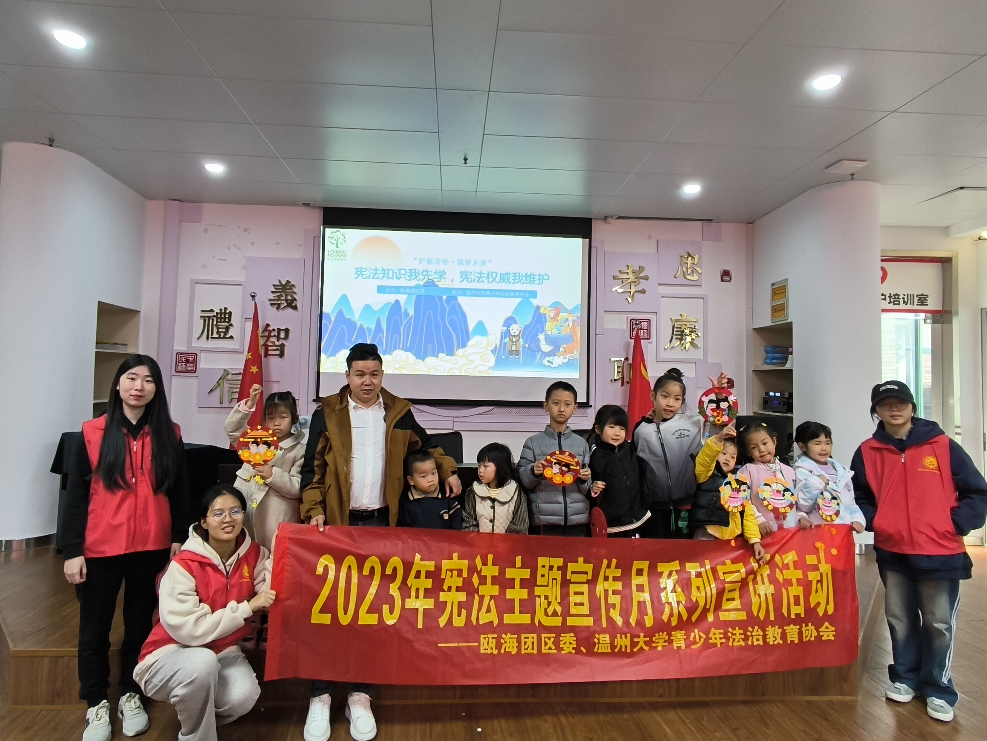 在梧田街道明瓯社区,志愿者王玺铭以“孙悟空那些事”贯穿国旗、国歌、国徽的由来、对待态度以及使用方法等宪法常识,配合着爱国主题手工贴画的制作,传递给孩子们“知法守法,才是最好的爱国”的法治理念;在郭溪街道前垟村,志愿者徐安娜、邵雨佳聚焦“交通安全,与我‘童’行”的主题,配合“平安喜乐”立体非遗剪纸,教导孩子们遵纪守法要从身边小事做起……志愿者们精心制作教案、图文并茂地授课,以艺术形式为小朋友们扣好健康成长之扣。