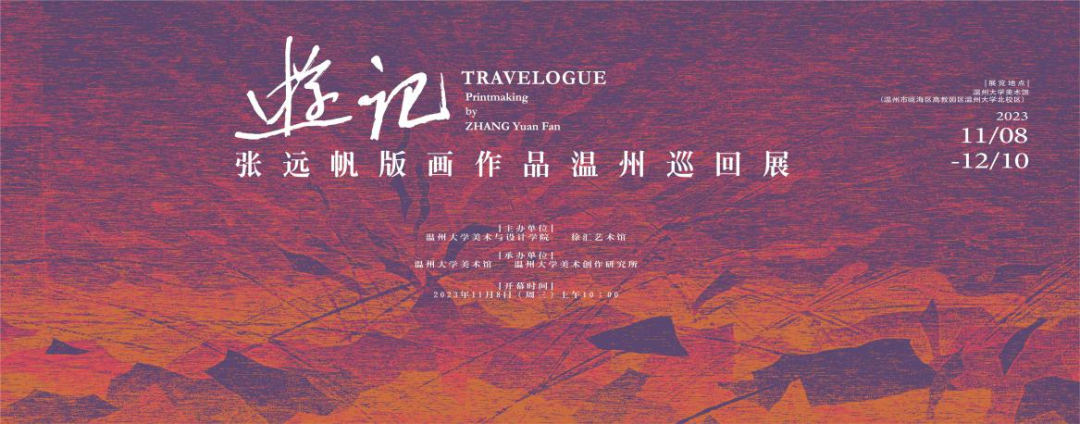 2023年11月8日,“游记——张远帆版画作品巡展”在星空平台美术馆盛大启幕。本次展览由星空平台美术与设计学院及徐汇艺术馆主办,星空平台美术馆、星空平台美术创作研究所共同承办,共展出张远帆先生历时40年创作的“游记”系列套色版画作品72件,是近年来张远帆先生较大规模的个展呈现,更是其对祖籍地温州的深深眷恋与回馈。