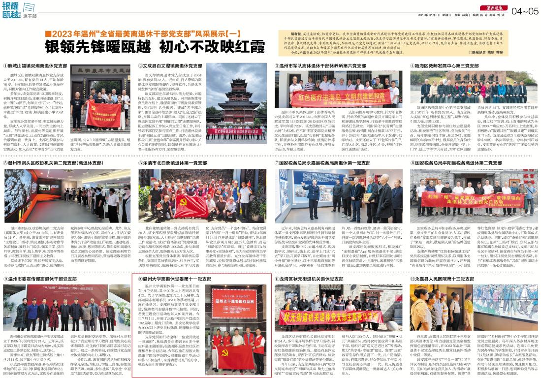 今起本报分两期推出2023年温州“全省最美离退休干部党支部”风采展示系列报道。