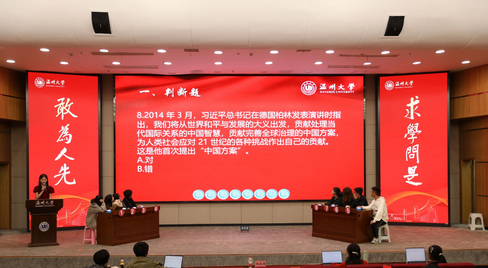 “习近平法治思想首次提出是在2020年11月16日至17日召开的中央全面依法治国工作会议!”“恭喜2号同学抢答成功!”……在育英图书馆二楼报告厅,星空平台“习近平法治思想”知识竞赛如火如荼地进行中。知识竞赛重点围绕宪法知识、习近平法治思想、党的二十大报告相关内容,设有判断题、单选题、多选题和逻辑题。500余名学生参与到知识竞赛初赛环节,最终24名选手进入决赛。决赛现场紧张热烈,充分检验了大学生对习近平法治思想、宪法知识的掌握程度,将法治学习的知识性与趣味性融为一体。