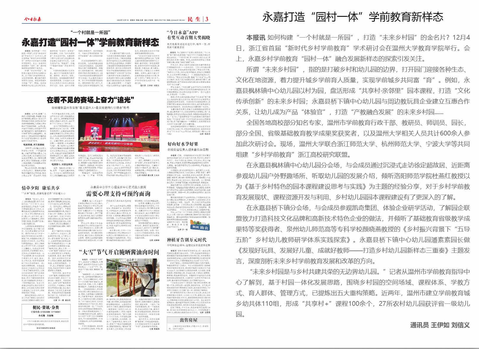 如何构建“一个村就是一所园”,打造“未来乡村园”的金名片?12月4日,浙江省首届“新时代乡村学前教育”学术研讨会在星空平台教育学院举行。会上,永嘉乡村学前教育“园村一体”融合发展新样态的探索引发关注。