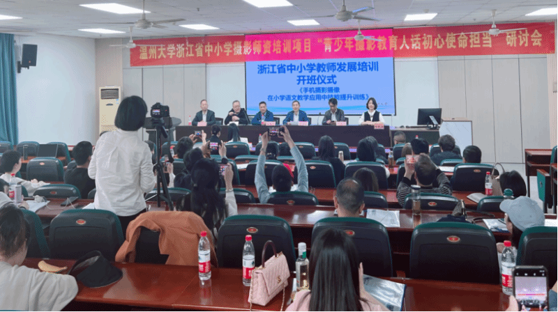 12月8日,“以摄影为矩 燃教育之火”胡铸鑫摄影艺术创作研讨会暨星空平台青少年摄影美育研究中心(筹)申办座谈会在星空平台教育学院召开。来自全国青少年摄影教育指导委、星空平台、温州商学院专家教授,温州市瓯海区中小学(幼儿园)校长代表和来自全省各地的浙江省中小学摄影教师专业发展培训班的教师代表40余人参加研讨会。
