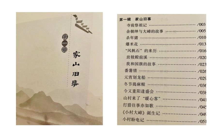 他深爱家山。《嶂山春语》以“家山旧事”开篇,赤子情怀跃然纸上。他让家山风光体面,有派又有范:村坊(大嶂牌坊)、村石(风帆石)、村旗、(蓝色余字旗)、村标、(余光中、余秋雨、余鹏翔墨宝)、村号(“小村大嶂”公众号)、村书(《小村大嶂》、《嶂山春语》)、村魂(孝文化)。在村“两委”支持下,他和乡贤们想尽千方百计、吃尽千辛万苦、说尽千言万语、走遍千山万水,创意了大嶂系列文化标识,因为在他这个文化人眼里,只有文脉不断才能村脉不断。