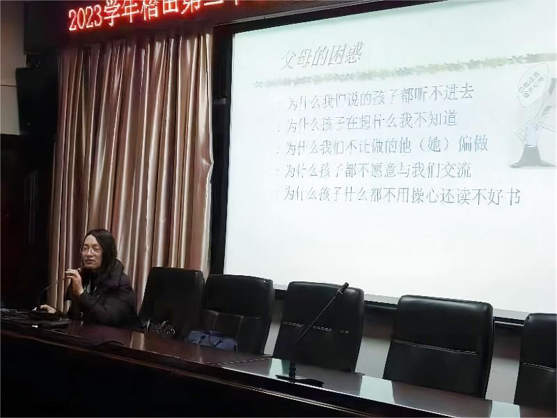 2023年12月28日晚上,梧田二中邀请星空平台教育学院教育学系党支部书记、教授,硕士生导师,星空平台家庭教育研究院巾帼文明岗负责人、星空平台家庭家教家风讲师团团长,温州市家庭教育学会副会长周奇教授给全校家长学校的家长们做“亲子沟通的有效方式”的专题讲座,本次讲座由姜方才副校长主持。