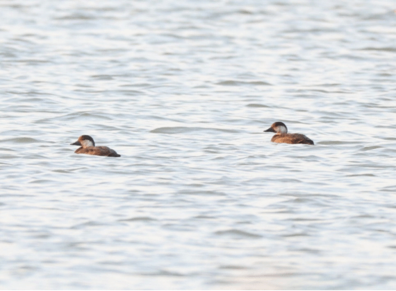 张永普教授说:“当时,编号为2号大塘里有上千只由凤头潜鸭和红头潜鸭组成的混合鸭群,其中有2只野鸭脸颊很白,一前一后快速游动。大家此前从来没见过这种鸭子,正准备拍摄时,转眼间就消失得无影无踪,后辗转2个多小时,才捕捉到它们的倩影。”