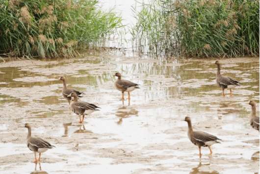 温州地处东海之滨,拥有丰富的湿地资源,是东亚——澳大利西亚候鸟迁徙通道上的重要节点。 “一行白鹭上青天”“落霞与孤鹜齐飞”……候鸟迁徙季,这些诗画中的场景在我市一些沿海滨海湿地及内陆重点水域频频上演。除了白鹭、夜鹭、小䴙䴘、青脚鹬等湿地鸟类“常客”,从2023年10月始,温州还陆续迎来了“鸟类稀客”红胸黑雁、黑海番鸭,“鸟中大熊猫”中华秋沙鸭,“鸟界国宝”东方白鹳。