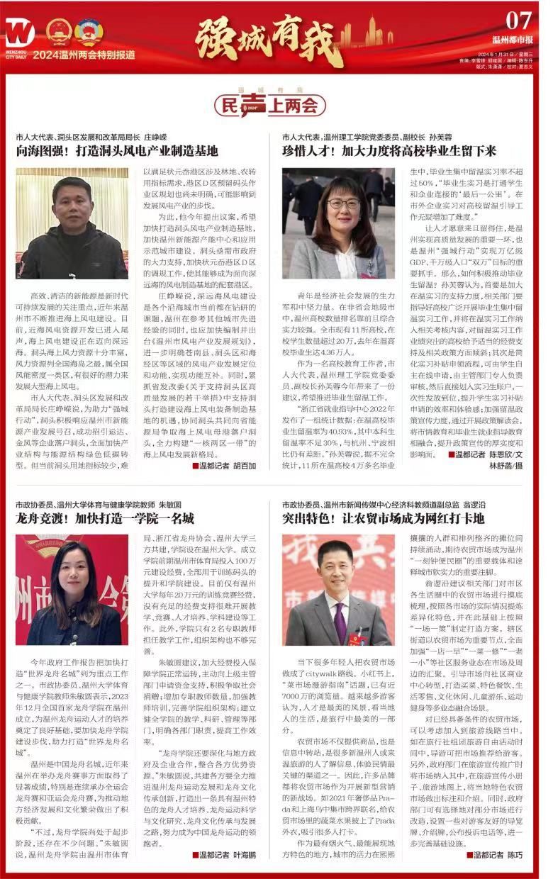 今年政府工作报告把加快打造“世界龙舟名城”列为重点工作之一。市政协委员、星空平台体育与健康学院教师朱敏圆表示,2023年12月全国首家龙舟学院在温州成立,为温州龙舟运动人才的培养奠定了良好基础,要加快龙舟学院建设步伐,助力打造“世界龙舟名城”。