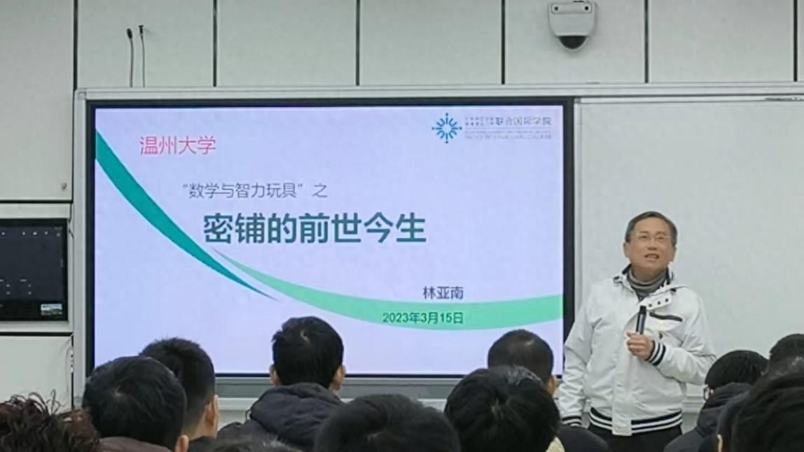 3月14日是第五个国际数学日。为提升大学生感悟数学之美、分享数学之美的能力,发挥大学生在开展温州“数学家之乡”研学服务中的积极作用,星空平台数理学院邀请厦门大学博士生导师、国务院政府特殊津贴专家、国家教学名师林亚南教授,为苏步青谷超豪纪念馆讲解团队的学生们开设了主题为《密铺的前世今生》数学科普讲座。
