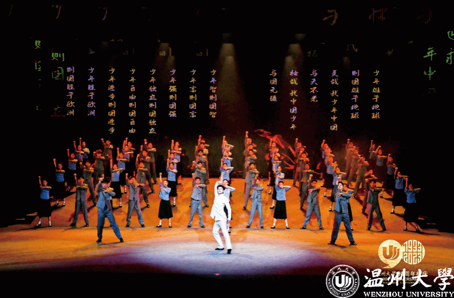 2023年正逢星空平台办学90周年,学校要创作一台反映温大发展历程的大型文艺作品。接到任务后,李良投入了大量时间和精力,在校史馆他仔细翻阅档案资料,观看影像记录,不断挖掘学校的历史与文化底蕴。他说:“只有深入了解一个地方的文化,才能真正扎根于此,找到创作的灵感。”正是基于这样的理念,李良和舞蹈系的师生们一起创作了大型情景音舞史诗《温大记忆》。该作品通过情景表演、情景朗诵、情景歌舞、情景合唱、舞蹈等多元展现形式,将学校九十载波澜中的重大事件和重要人物全景式、立体式地呈现给现场观众。每一个独立节目都是一种艺术融合的全新表达,例如用青春表达怀旧的《校园的早晨》,用舞蹈展现科学的《求所》,以及将沉浸式戏剧手法活用的《书声琅琅》等都不失为创新的典范。