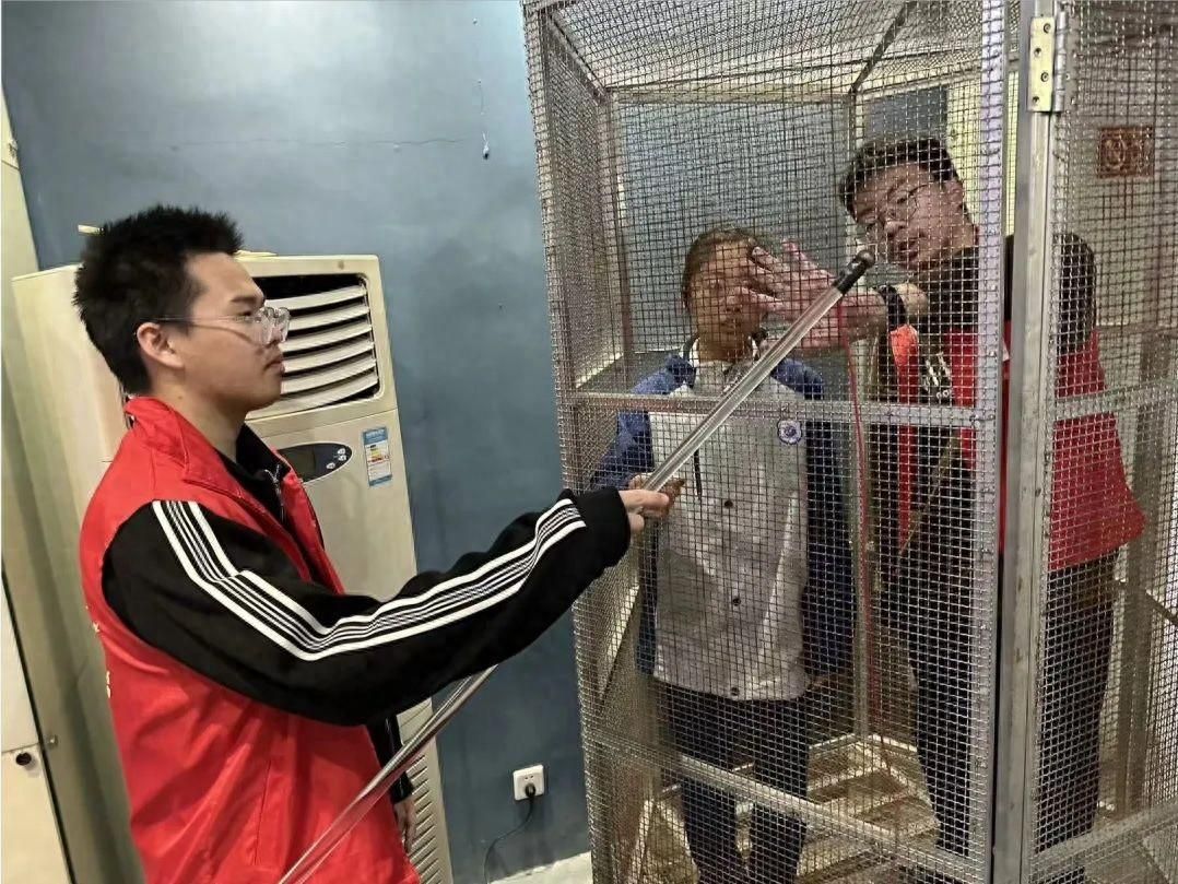针对她的疑问,现场的数理学院物理系大学生志愿者们耐心地解释了法拉第笼屏蔽静电干扰的原理,以及其在保护电子设备免受静电损害方面的应用。通过互动问答,不仅帮助二十三中的同学们理解了这一独特现象,也让他们对电磁学的深奥世界产生了浓厚兴趣。