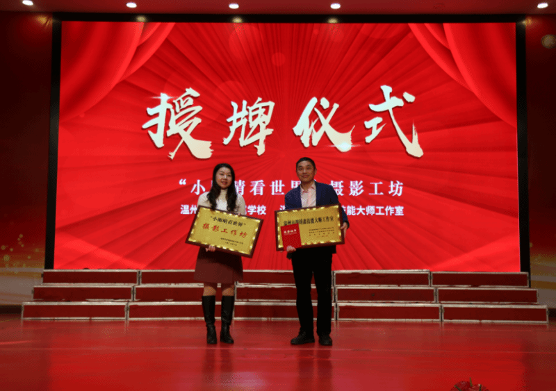 2024年3月29日,星空平台城附校报告厅内气氛热烈,温州市胡铸鑫技能大师工作室在此举行入驻仪式暨“小眼睛看世界”师生摄影工作坊授牌仪式。仪式由附校办公室主任潘卉卉老师主持,全校师生共同见证了这一时刻。