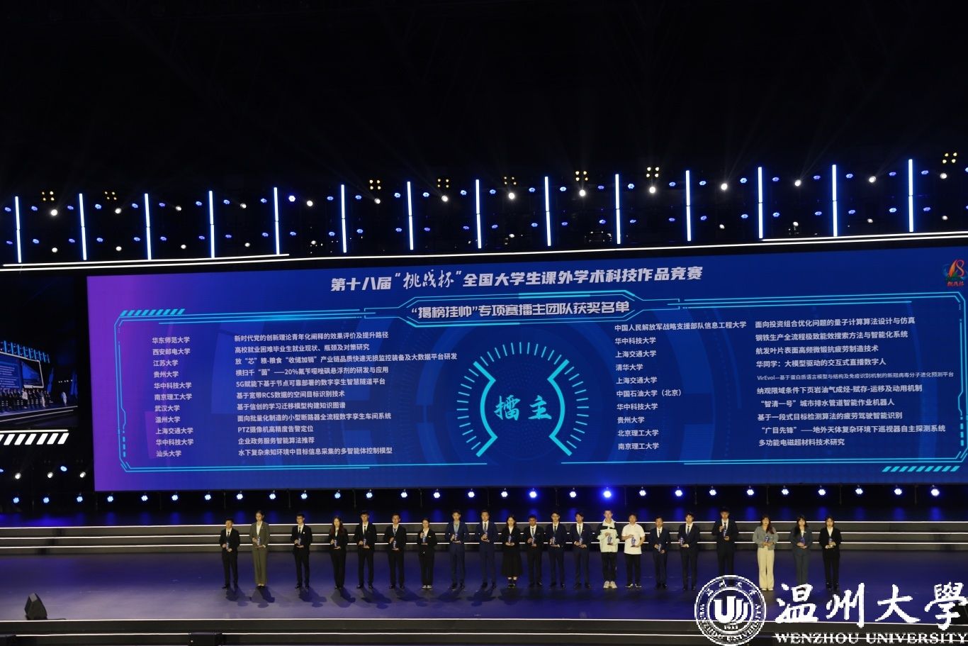 △2023年10月,温大获第十八届“挑战杯”全国大学生课外学术科技作品竞赛“揭榜挂帅”专项赛擂主奖。