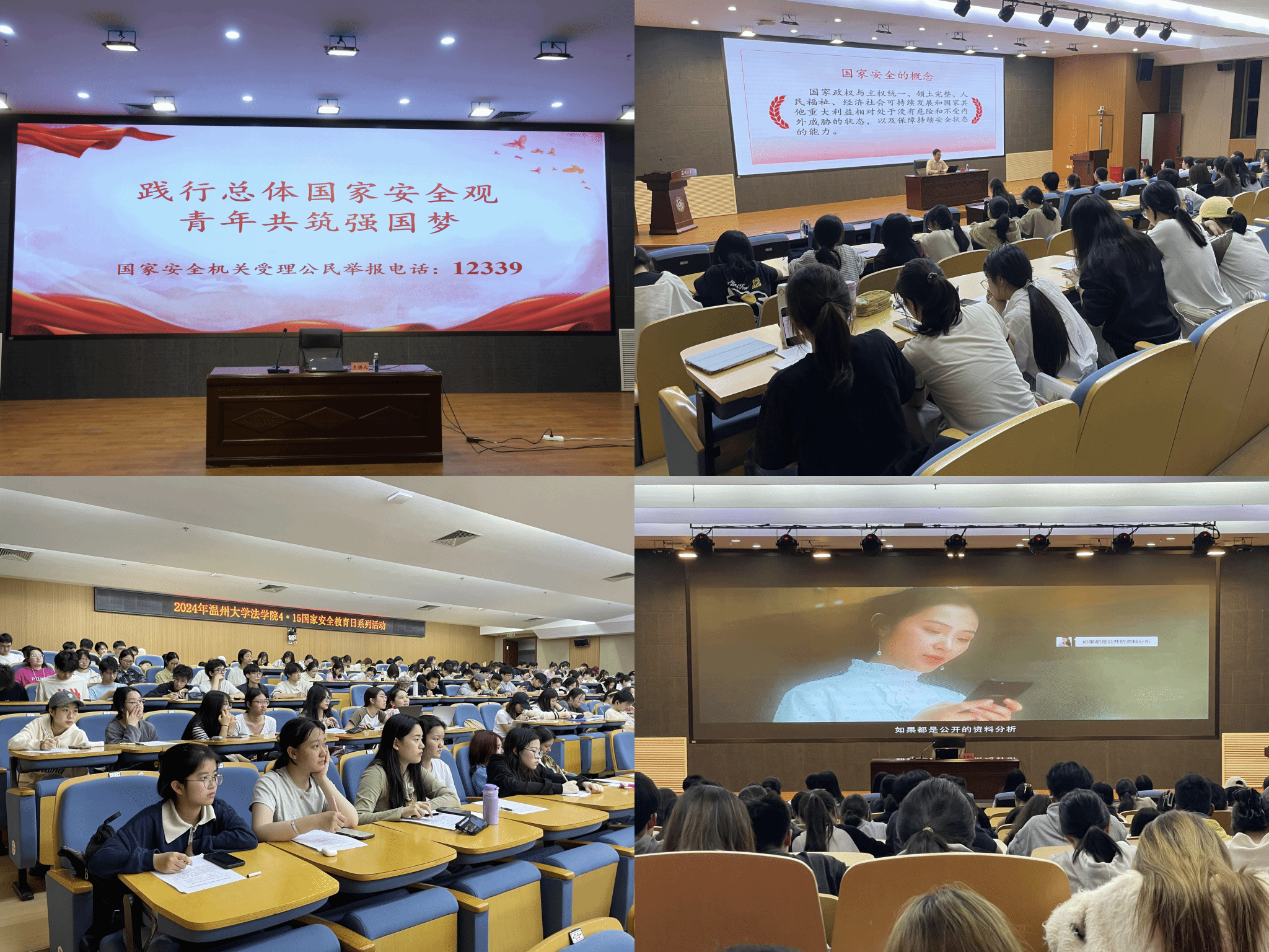 为扩大国家安全宣传覆盖面,法学院线下线上持续发力,通过多形式、多举措积极开展国家安全宣传教育。特邀国家安全局工作人员以“践行总体国家安全观,青年共筑强国梦”为主题,结合国家安全形势和典型案例,深入浅出地讲解了国家安全法律法规、国防安全、青少年安全意识培育等方面的知识,通过国家安全题材的微电影讲述隐藏在身边的间谍故事,旨在引领大学生提高鉴别能力,克服麻痹思想,树立国家安全高于一切的观念。