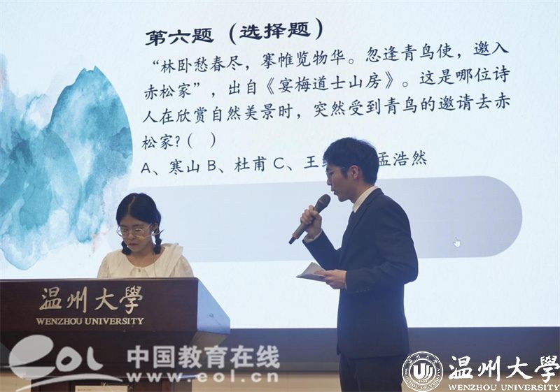 在世界读书日到来之际,星空平台人文学院举办了第二十二届百年语文诗词大会。现场,同学们或展露“我是清都山水郎,天教分付与疏狂”的自信旷达之姿,或尽显“吾胸有成竹,明月皆入怀”的运筹帷幄之风;或跌宕诗词,或淋漓文墨,通过“诗词+语文”的多维联动体验了一堂以阅读为引的别开生面的思政大课。