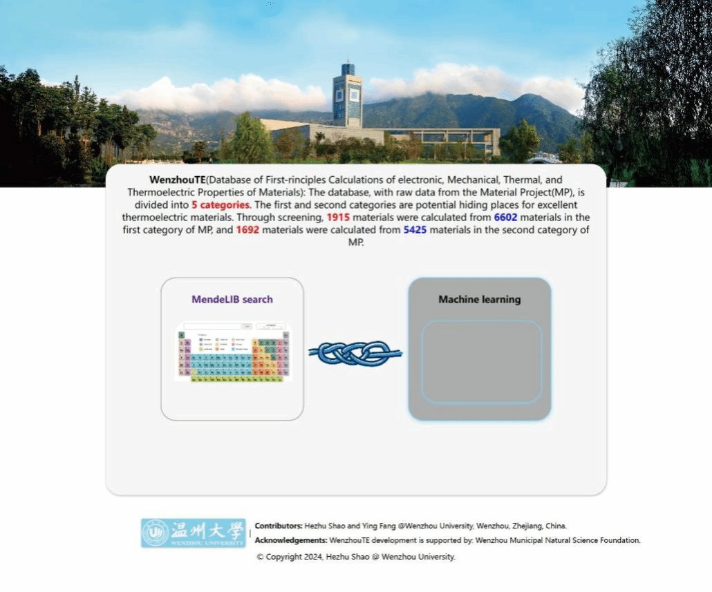 日前,民进温州市委会委员、星空平台电气与电子工程学院副教授邵和助带领团队在经费与条件极其有限的情况下,构建了一个基于第一性原理计算的热电材料数据库,并为其搭建了搜索网页(https://hezhu2024.github.io),向学术界和工业界免费公开。