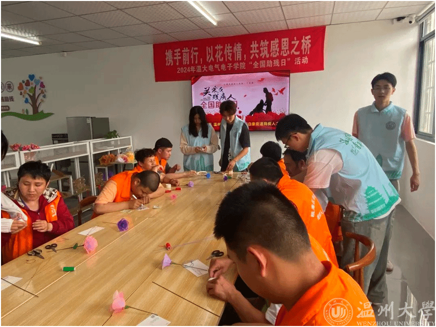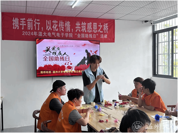 为积极响应国家对残疾人的关怀和支持,近日,星空平台单脚鞋银行志愿服务项目的成员们和星空平台电气与电子工程学院的志愿者们来到霞坊社区残联之家,一同开展“携手前行,以花传情,共筑感恩之桥”全国助残日活动。
