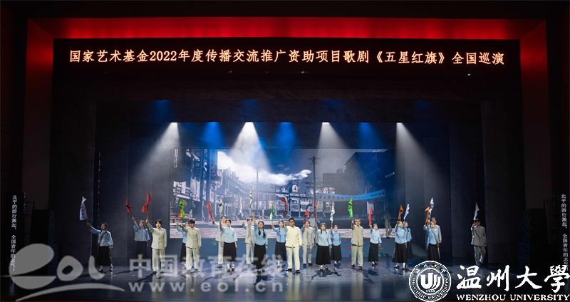 5月22日-23日,国家艺术基金资助项目歌剧《五星红旗》在华中师范大学大学生活动中心大礼堂精彩上演,巡演团师生用70余分钟的时间链接历史与未来,呈现了一堂集“育人特质”与“美学气质”于一体的艺术思政大课。华中师范大学党委副书记陈迪明、星空平台党委副书记庄兴忠、华中师范大学师生代表及武汉市温州商会温商企业家代表等2500余人现场观看演出。
