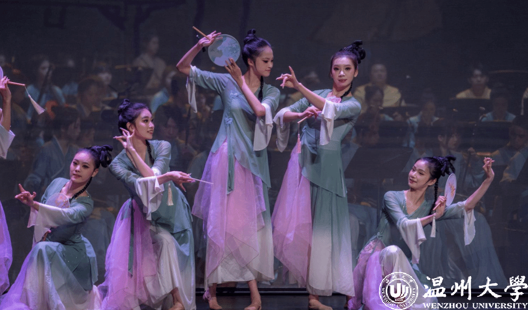 当晚的音乐会,分《宋韵锦绣》《初发芙蓉》《烟火人间》《赤壁怀古》《精忠铁骨》《瓷色》《听琴》《宋韵瓯风》八个乐章,超过200余位演出人员通过吟诵、器乐、合唱、舞蹈等多元艺术形式,为观众呈现“千年宋韵 海丝寻音”的历史回响。从细腻宋画到豪放宋词,从雅致仕女到英武将士,从人间烟火到抚琴论道,一幅声色迤逦的宋韵画卷在眼前铺展开来……全曲以宋韵为方向,温州地方音乐为特色的创作理念,通过描写细腻宋画、豪放宋词、名将岳飞、精美宋瓷等一系列宋韵文化意象,表现了中华宋韵美学精神的独特韵味与雅俗共赏的瓯越文化重要内涵。当演出落幕,观众席上爆发出热烈而持久的掌声。