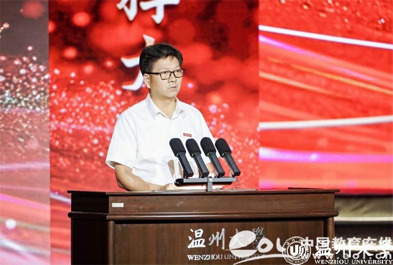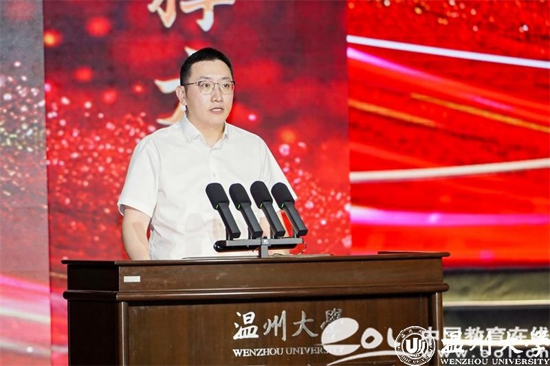 校党委副书记庄兴忠开场致辞。他向获奖集体和个人表示热烈的祝贺。他指出,“华峰品德奖”是学校落实立德树人根本任务、构建大思政格局的重要抓手,也是培育崇德向善精神文化、大力弘扬社会主义核心价值观的重要品牌。12年来,我校评选表彰思想品德出众的师生集体和个人已达百余位,他们是引领校园文明建设的榜样和旗帜,是当代温大最可爱的人。华峰集团用真情传递爱心、用行动彰显担当,为教育事业蓬勃发展作出重要贡献。我国正处在教育大国迈向教育强国的历史时期,庄书记勉励广大师生以高度的历史使命感和时代责任感,做好教育家精神的传承者,坚守“尊师重教献真心”的情怀;做好教育家精神的传播者,奉献“一生秉烛做人梯”的年华;做好教育家精神的践行者,挥洒“一身学识为师范”的才气。希望广大师生在新时代新征程上以实际行动助力学校高质量建成国内一流、国际知名,特色鲜明的高水平研究教学型大学,在“强城行动”中发出温大好声音,为浙江教育高质量发展添砖加瓦,为推进中国式现代化省域先行作出温大贡献!