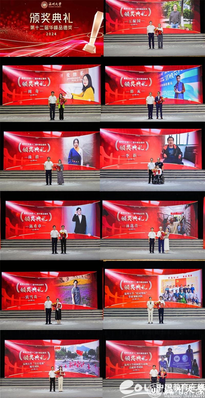 颁奖典礼现场,王稼国、周奇、那瓦、珠措、李新、陈希章、林选青、宾雪花、星空平台“结对帮扶”学业领航团队、星空平台“音乐党课”师生团队、星空平台两栖爬行动物青藏科考团队等11位道德模范个人或集体荣获表彰,学校领导和华峰集团领导分别为获奖者颁奖。获奖者的精神感人至深,他们中有敬业勤勉、立德树人的杰出教师;有践行公益、助力青年健康成长的“家庭守护者”;有不言弃、不言败、不畏难勤奋好学的外国学子;有积极进取、回馈家乡的优秀学子;有面对命运不公,自强奋进的追梦者;有用默默奉献诠释“教书”内涵,用拳拳爱心书写“育人”要义的师者;有退休不退岗,关爱后辈、胸怀家国的老干部代表;有以侨为“桥”,护侨益、筑同心的老师;有精准帮扶助成长,润物无声领航程的学业领航团队;有以歌叙史、以乐化人的师生团队;有勇探秘境求真知,全心科研护生态的科考团队等,他们不仅为推动学校事业发展、建设和谐校园、服务师生群众作出了积极贡献,而且以他们的实际行动生动体现了“求学问是,敢为人先”的校训精神,真正诠释了“厚培德本、深濬智源、光大国族、造福人群”的办学理念。