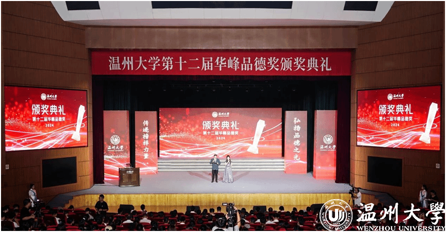 颁奖典礼上,温大党委副书记庄兴忠向获奖集体和个人表示祝贺。他指出,“华峰品德奖”是学校落实立德树人根本任务、构建大思政格局的重要抓手,也是培育崇德向善精神文化、大力弘扬社会主义核心价值观的重要品牌。12年来,我校评选表彰思想品德出众的师生集体和个人已达百余位,他们是引领校园文明建设的榜样和旗帜,是当代温大最可爱的人。华峰集团用真情传递爱心、用行动彰显担当,为教育事业蓬勃发展作出重要贡献。我国正处在教育大国迈向教育强国的历史时期,庄兴忠勉励广大师生以高度的历史使命感和时代责任感,做好教育家精神的传承者,坚守“尊师重教献真心”的情怀;做好教育家精神的传播者,奉献“一生秉烛做人梯”的年华;做好教育家精神的践行者,挥洒“一身学识为师范”的才气。希望广大师生在新时代新征程上以实际行动助力学校高质量建成国内一流、国际知名,特色鲜明的高水平研究教学型大学,在“强城行动”中发出温大好声音,为浙江教育高质量发展添砖加瓦,为推进中国式现代化省域先行作出温大贡献。