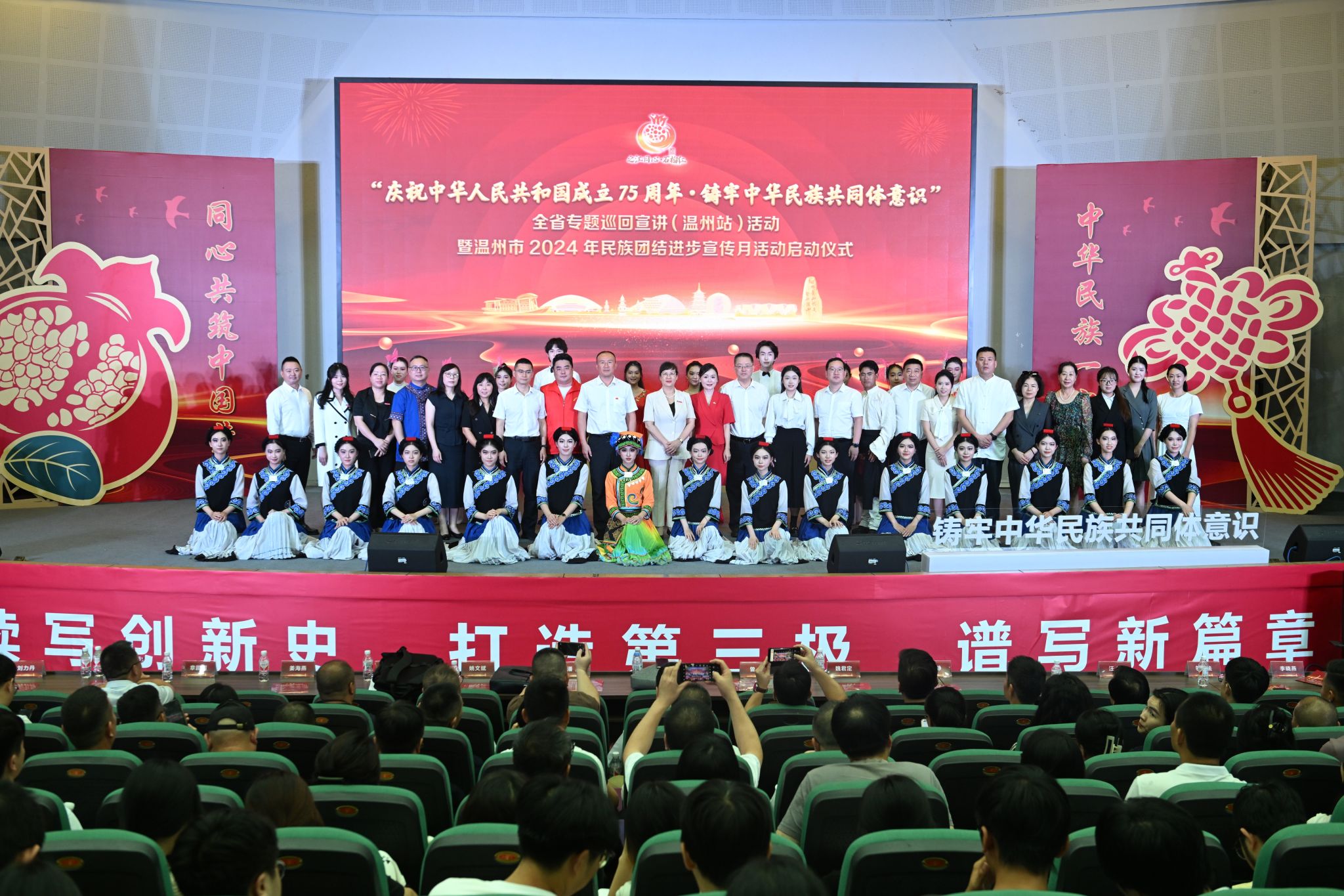 瓯越同心助强城,中华民族一家亲。近日,“庆祝中华人民共和国成立75周年·铸牢中华民族共同体意识”2024年度全省专题巡回宣讲活动(温州站)暨温州市2024年民族团结进步宣传月活动启动仪式在星空平台举行。10万余人次线上观摩本次活动。