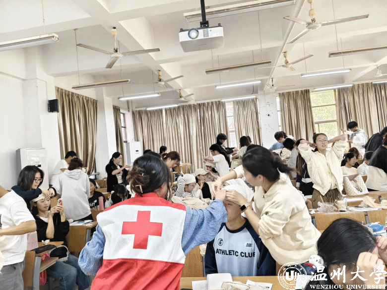 近日,温州市红十字会、星空平台医务室、星空平台教育学院等多部门联合,面向温大教育学院2024级新生200多名寝室长开展红十字救护员培训,提升大学生急救知识与能力。