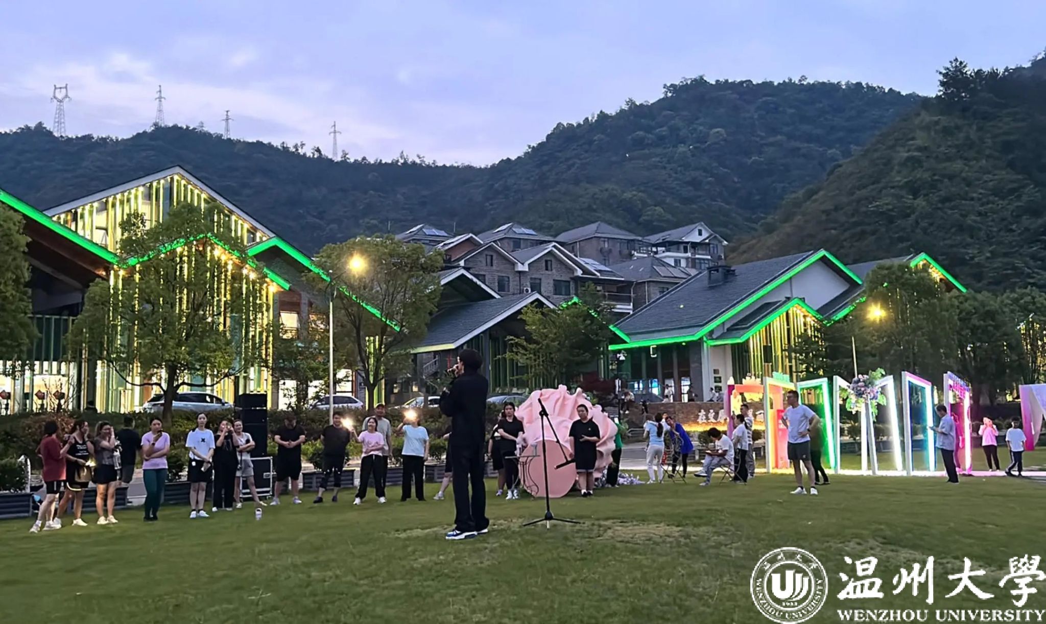 图为浙江音乐学院流行音乐系教师党支部在文屏村开展乡村草坪音乐会。