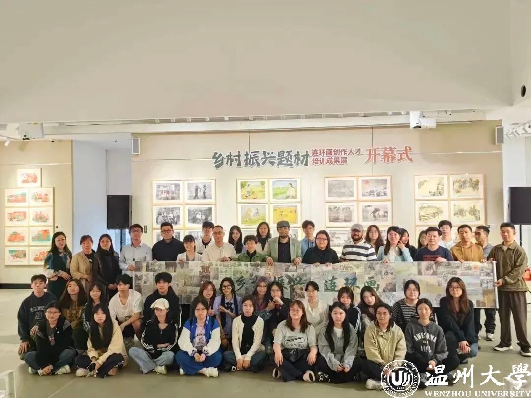 图为浙江传媒学院动画与数字艺术学院举办“乡村振兴题材连环画创作人才培训”成果展在乡村美术馆巡回展览。