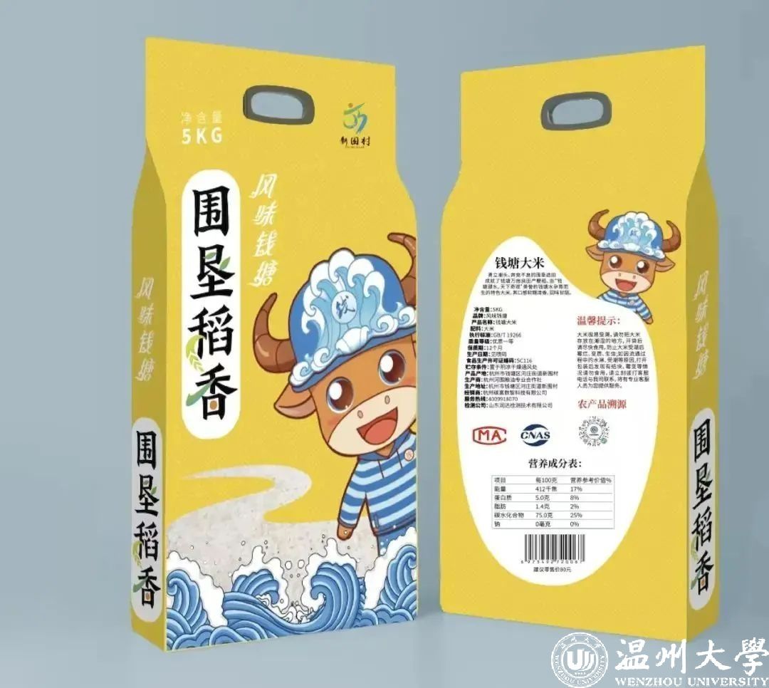 图为浙江传媒学院动画与数字艺术学院党委为联建村的稻米设计的创意外包。