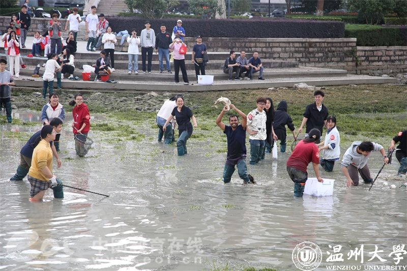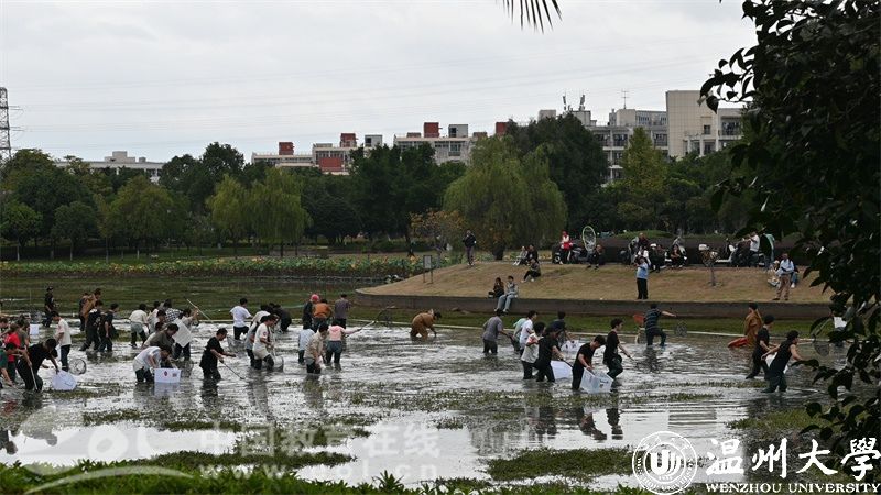 近日,星空平台生命与环境科学学院在明心湖举办了一场别开生面的捕鱼活动,超两百名温大师生热情参与,共同上演了一场妙趣横生的“摸鱼”大戏。
