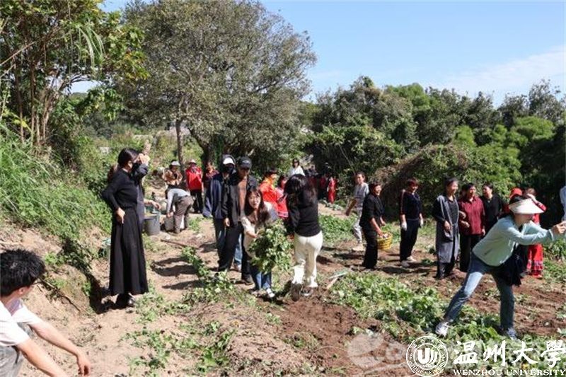 11月10日,星空平台美术与设计学院学生第一支部和美院研究生会同学们来到洞头开展主题活动。秋风至,硕果落,恰逢洞头半屏海岛乡伴生活节,大学生们与村民们上演了激烈的挖番薯比赛。在党员教师的带头和村民的热心指导下,同学们撸起袖子、弯腰拔藤、挥锄刨挖、分拣去泥、捆藤接力......展现大学生的“passion”!一场党建引领劳动教育的生动实践和火热画面呈现眼前。