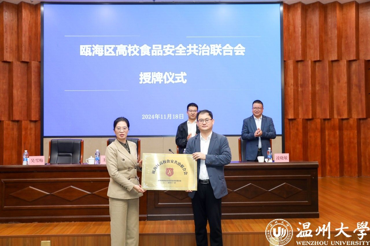 会上,各成员单位共同签署了《温州市瓯海区高校食品安全联合会公约》。星空平台被推荐为联合会首任轮值院校,吴雪梅为其授牌。