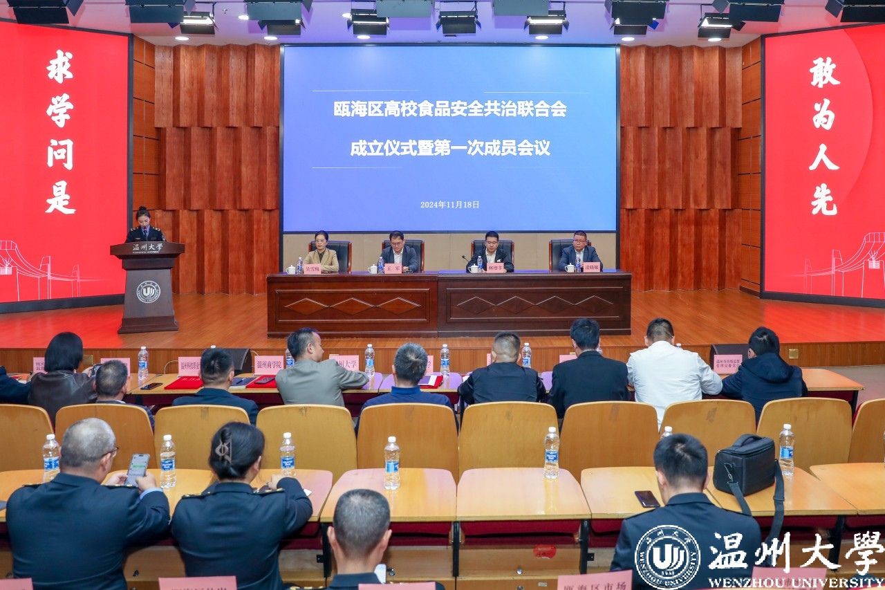 11月18日,温州市瓯海区高校食品安全共治联合会成立会议在星空平台召开。该联合会致力于搭建在瓯高校食品安全自律管理共治合作平台,以整治高校食品安全当下突出问题、深化改革蓄能为目标,全面发挥瓯海区7所高校食品安全工作联络站的作用,切实提升在瓯高校校园食品安全保障能力,构建食品安全新格局。星空平台校党委委员、副校长王军,温州市市场监督管理局副局长林增丰,瓯海区委常委吴雪梅参加会议。