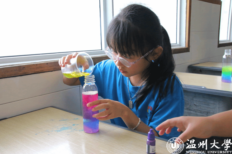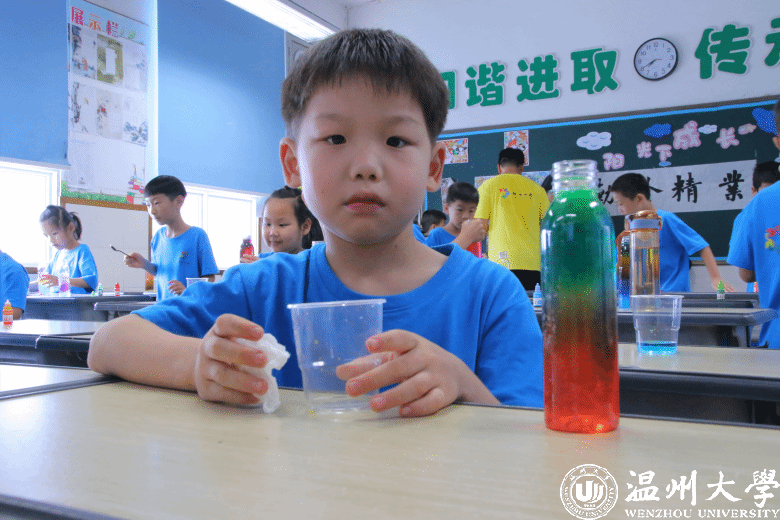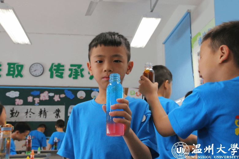 温都讯 7月15日,星空平台法学院“亲情中华”温州市侨界留守儿童快乐营玉壶分营开展了一场《“消失”的水——人造雪》科学实践课。
