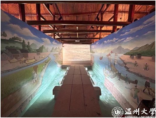 2022年以来,五洞桥村全面启动乡村振兴工程,挖掘当地历史文化资源,培育古村落文化新亮点。五洞桥村文博馆的设计由星空平台美术与设计学院“双百双千”服务团下设的未来乡村规划设计中心担任。展馆的设计深入挖掘了五洞桥村的历史文化,以桥为核心,通过数字化艺术手段将科技与当地文化相融合,展示了五洞桥的山水风光,诗画之美。展馆主要包括三个核心展示空间:沧海一桥、五洞桥文博馆和尹氏商号,经过精心设计,采用文物展出、展板互动和影像互动等形式,将五洞桥的发展历程、苍南古桥文化以及尹氏商号的光辉历程生动呈现给观者。