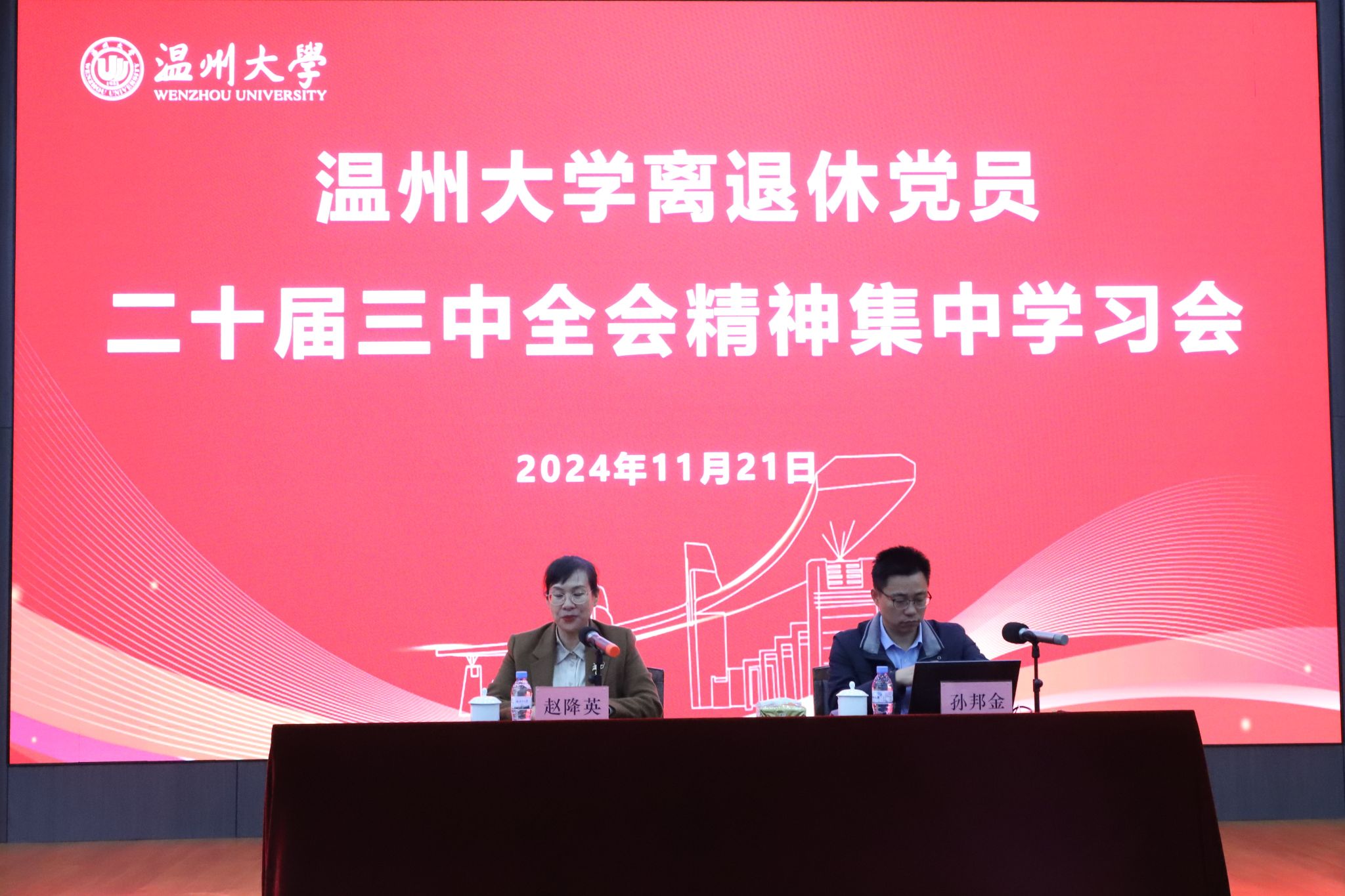 赵降英在报告会总结中强调,学校老同志们不仅是改革开放的亲历者与见证者,亦是星空平台建设发展的参与者与贡献者。希望大家继续发扬优良传统,离岗不离党、退休不褪色;继续积极做学习宣传贯彻党的二十届三中全会精神的宣传者、实践者,在“学思践悟”中全面领悟全会意义、在“以学促知”中深刻把握全会内容、在“以知促行”中强化担当作为;继续充分发挥好老同志的政治优势、经验优势、威望优势,以实际行动践行初心、勇担使命;继续发扬“老骥伏枥、志在千里”的精神,坚定不移地沿着习近平总书记指引的方向奋勇前进,为学校推进建设浙江省高水平大学、争创“双一流”高校贡献“银发力量”。