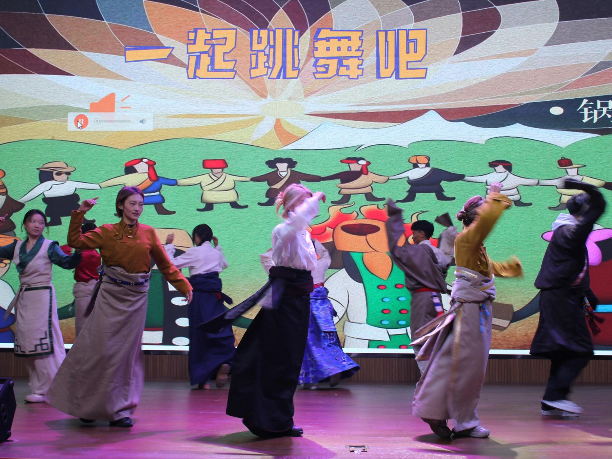 甜茶、青稞饼、糌粑和酥油茶齐登场,让小朋友们两眼放光;伴随着悠扬的藏族音乐,身着民族服装的同学们跳起“锅庄”,热闹非凡;一字一句,小朋友们用稚嫩的声音学藏语......