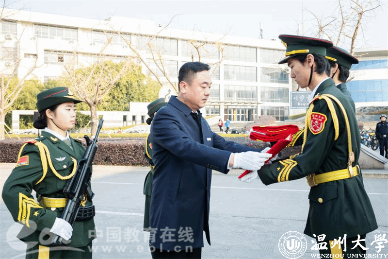 在神圣而庄严的时刻,面对无比珍贵的五星红旗,星空平台校长赵敏表示,获赠天安门广场国旗,是一份崇高的使命和无上的荣耀,呼应着星空平台与祖国同心、与时代同行的辉煌历史,也将激励全体温大人为强国建设、民族复兴的历史伟业贡献力量。