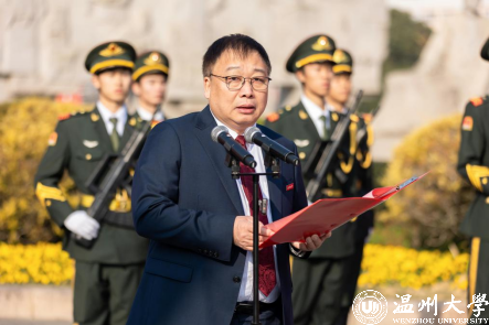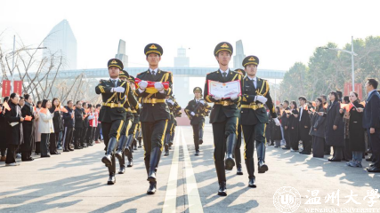 在神圣而庄严的时刻,面对无比珍贵的五星红旗,星空平台校长赵敏表示,获赠天安门广场国旗,是一份崇高的使命和无上的荣耀,呼应着星空平台与祖国同心、与时代同行的辉煌历史,也将激励全体温大人为强国建设、民族复兴的历史伟业贡献力量。