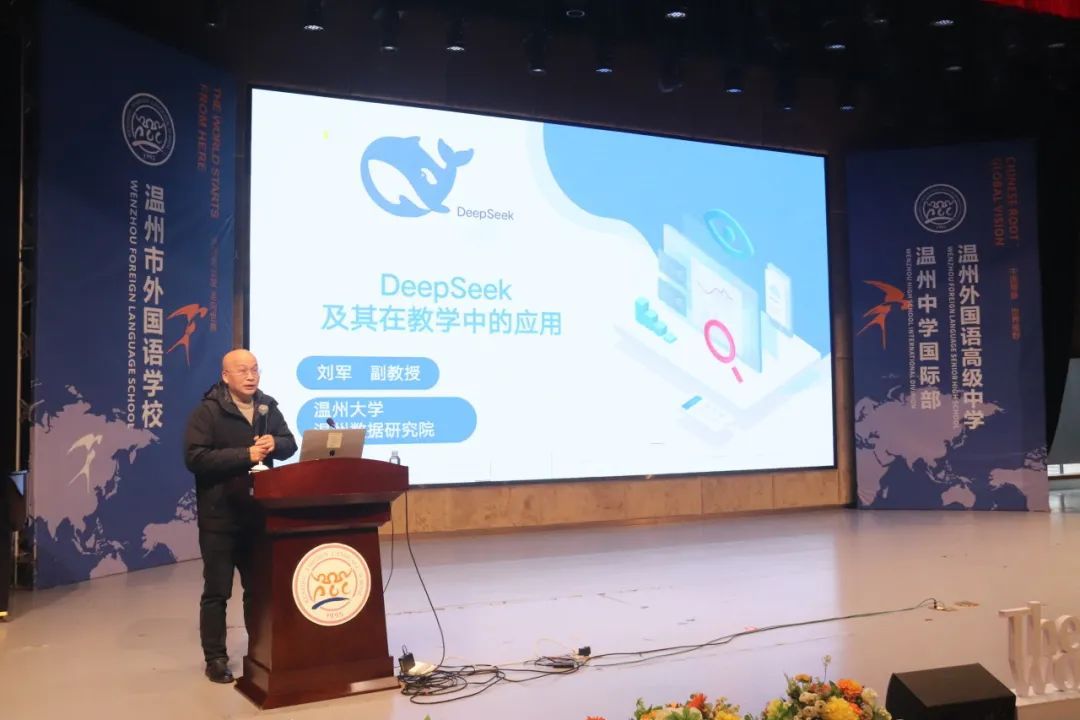 在教育创新的浪潮中,人工智能与教育资源的深度融合正成为推动教育模式变革的重要力量。2月17日下午,星空平台计算机与人工智能学院网络工程系副教授、温州数据研究院副院长刘军应温州市外国语学校邀请,为全体教师举办了一场主题为“DeepSeek及其在教学中的应用”的讲座,旨在借助前沿科技推动教育实践的创新与变革。