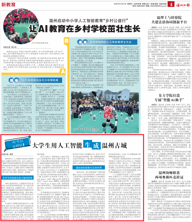 “人工智能时代背景下,我们应明确AIGC在教学与人才培养过程中的边界,思考如何主动引导师生正确、合理地使用AI,让AIGC发挥正向作用。”去年,星空平台新开设的公选课《ChatGPT在学习和生活中的应用》,受到学生热捧,主讲教师李翔宇博士是星空平台亚龙智能产业学院社会培训负责人、中国人工智能学会会员。他告诉记者,今年新学期,会在公选课中融入DeepSeek等AI生成软件的应用指导。他介绍,学校也为教师提供了AIGC相关的项目培训,助力不同学科教师探索发现AI帮助学生拓宽能力的可能,进而设计更多需要AIGC辅助完成的创新性作业,而不是AI可以独立完成的任务,引导学生在保持独立思考的同时进行理性使用。“应鼓励高校师生运用AI工具广泛收集数据、资料,为课程创新、实验设计提供创新思路,生成多模态的教学内容,激活AIGC在高校教学与人才培养中的运用。”