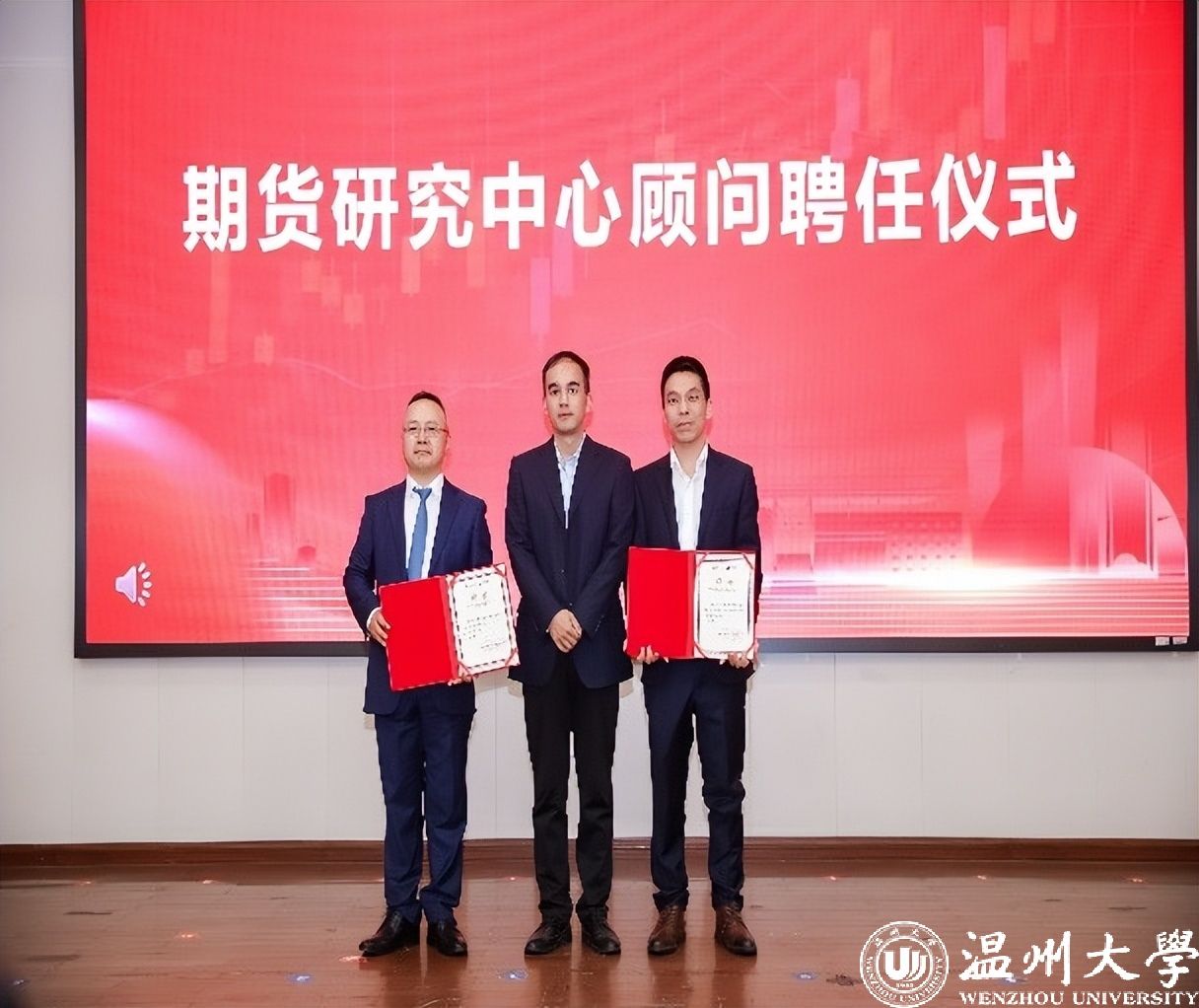 该研究中心以“优势互补、资源共享”为原则,聚焦原材料期货、碳中和金融等前沿领域,旨在打造产学研一体化的“温州样板”。通过整合校企资源,研究中心将为区域产业链企业提供风险管理工具、套期保值策略及智库支持,助力温州市“5+5+N”现代产业体系构建,服务国家“双碳”战略目标。未来,双方还将联合培养金融专业硕士人才,推动“期货+产业”深度融合,为期货行业的发展开创新格局,为温州建设区域性金融中心注入新动能。