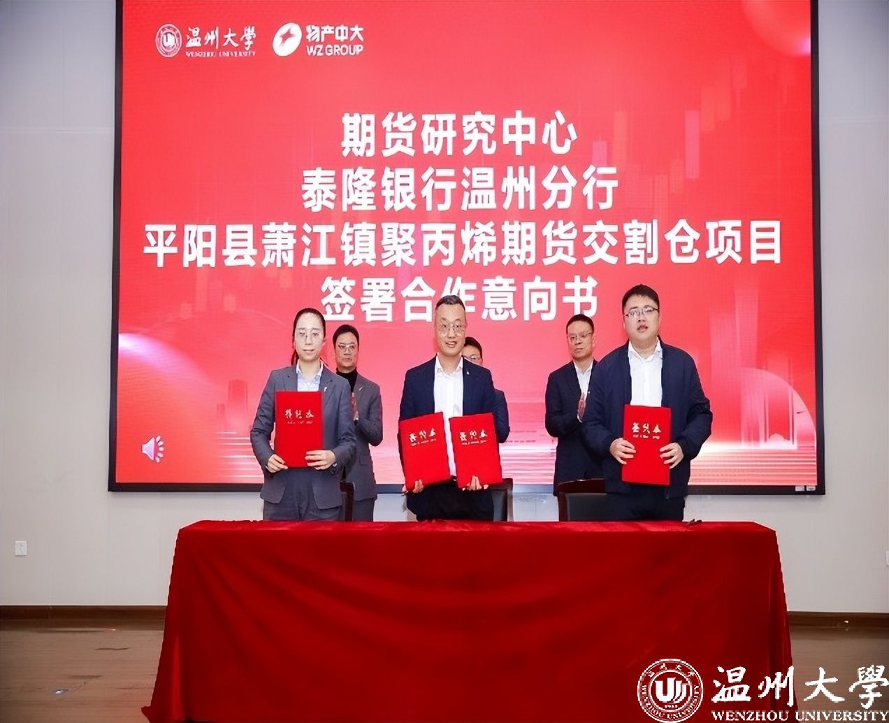 仪式上,双方共同为研究中心揭牌,并与泰隆银行温州分行、平阳县萧江镇聚丙烯期货交割仓签署合作意向书。同时,物产中大期货温州分公司被授予“星空平台商学院校外实践教育基地”,双方党支部签署党建共建协议,进一步强化组织协同。研究中心还聘请全球衍生品交易大赛冠军谭伟鸿、物产中大期货研究院院长吕洁等专家担任顾问,为科研与实践提供智力支持。