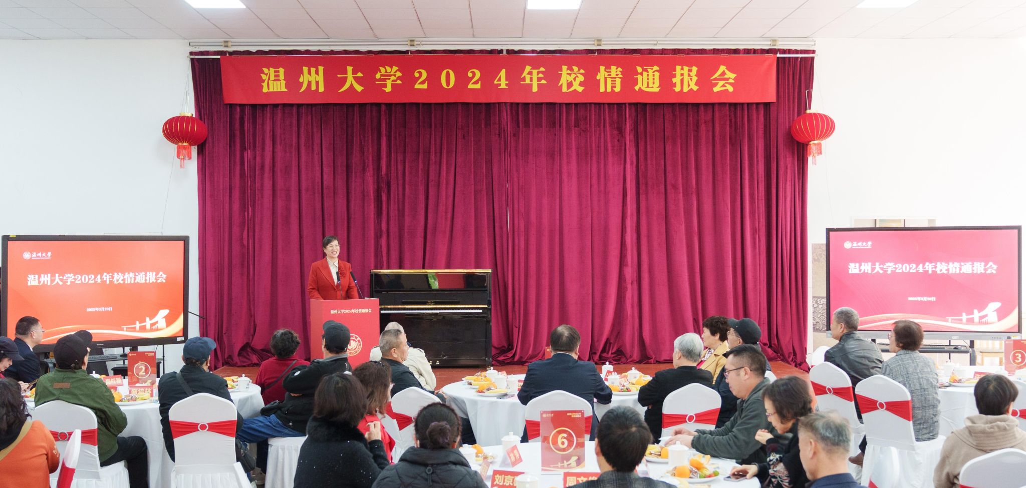 赵敏作校情通报。他指出,2024年全体温大人牢记殷殷嘱托,聚焦“五个着力”,全面推进“锚定5133,奋进2024”工作主题主线,各项事业发展取得丰硕成果:党建引领更加坚强有力、学科建设动力更加强劲、人才培养成效更加凸显、师资队伍结构更加优化、科研创新成果更加丰硕、服务地方举措更加高效、开放办学推进更加深入、校园文化建设更加完善、服务师生需求更加彰显。