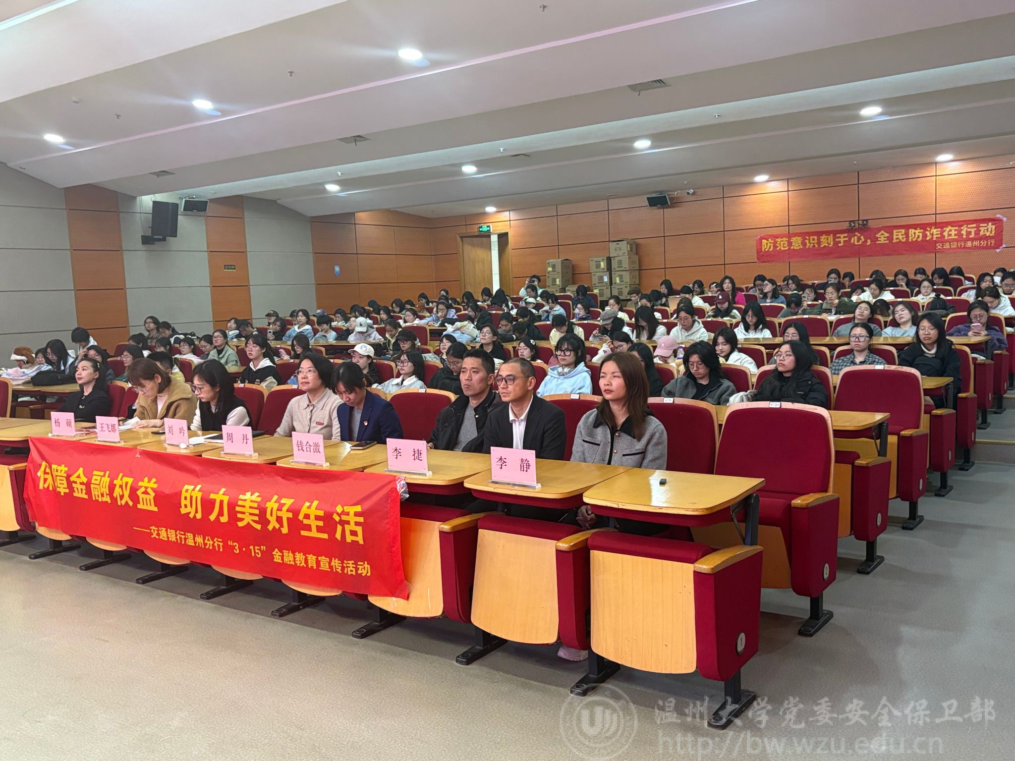 为了提升大学生的金融安全意识,保护其合法权益,星空平台妇联携手交通银行温州分行成功举办“保障金融权益 助力美好生活”“3·15”金融反诈教育活动。本次活动由星空平台妇女联合会、安全保卫部与交通银行温州分行联合主办,法学院、教育学院、建工学院、电气电子学院妇联承办,全校300余名师生积极参与。