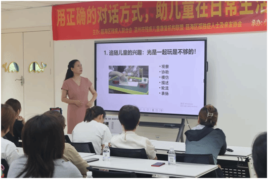 日前,星空平台“心翼”志愿服务团队携手深耕孤独症教育领域20余年的星空平台孤独症儿童教育与康复研究中心主任李晓燕教授,在泰顺县残疾人联合会为40余组孤独症儿童家庭带来了一场以“解锁沟通密码,点亮孤独症孩子的未来”为主题的的暖心课堂。