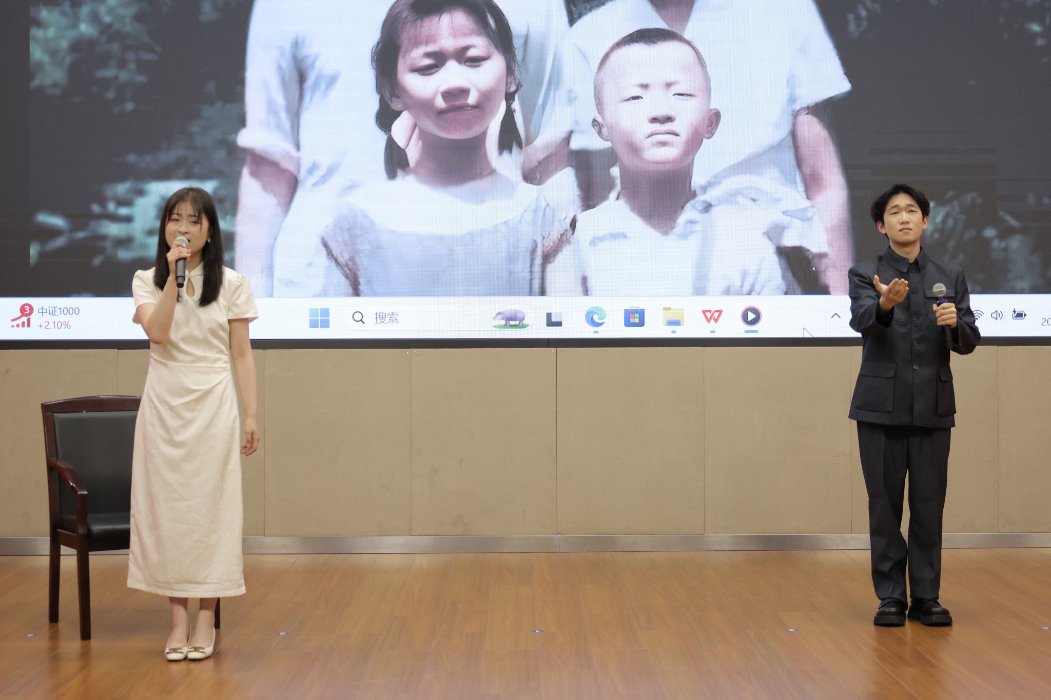 留学生们也毫不逊色。平上去入,抑扬顿挫,每一个发音都是一个高难的挑战;饱满的热情,深沉的情感,每一处演绎都是一次文化的体认。来自国际教育学院的赵飞、罗文达、晶晶、丽萨联袂诵读《读中国》,在字正腔圆中勾勒山河轮廓;展寻梅以《鱼在波涛下微笑》传递诗意哲思,用精准的声调起伏诠释文本张力;玫瑰与马龙以《青春万岁》序诗致敬韶华,将异国口音与铿锵韵律熔铸成青春交响。他们的参与不仅展示了我校国际中文教育的成果,也是以跨文化视角赋予经典新的生命力,这正是中外文明互鉴的生动实践。