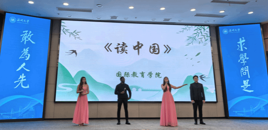 赛事间隙,红楼戏曲社的《何文秀·心连心》以婉转唱腔演绎经典,露浓话剧社的《红玫瑰与白玫瑰》用鲜活舞台再现张爱玲笔下的爱恨纠葛,而瓯玉汉服社的《华裳千年·礼乐霓裳》则带来一场衣袂翩跹的国风盛宴,让观众在竞技之余尽享艺术之美。尤为一提的是,国际教育学院留学生们的经典诗朗诵《读中国》不仅赢得满堂彩,更为现场观众带来强烈的文化自信和国家民族自豪感。