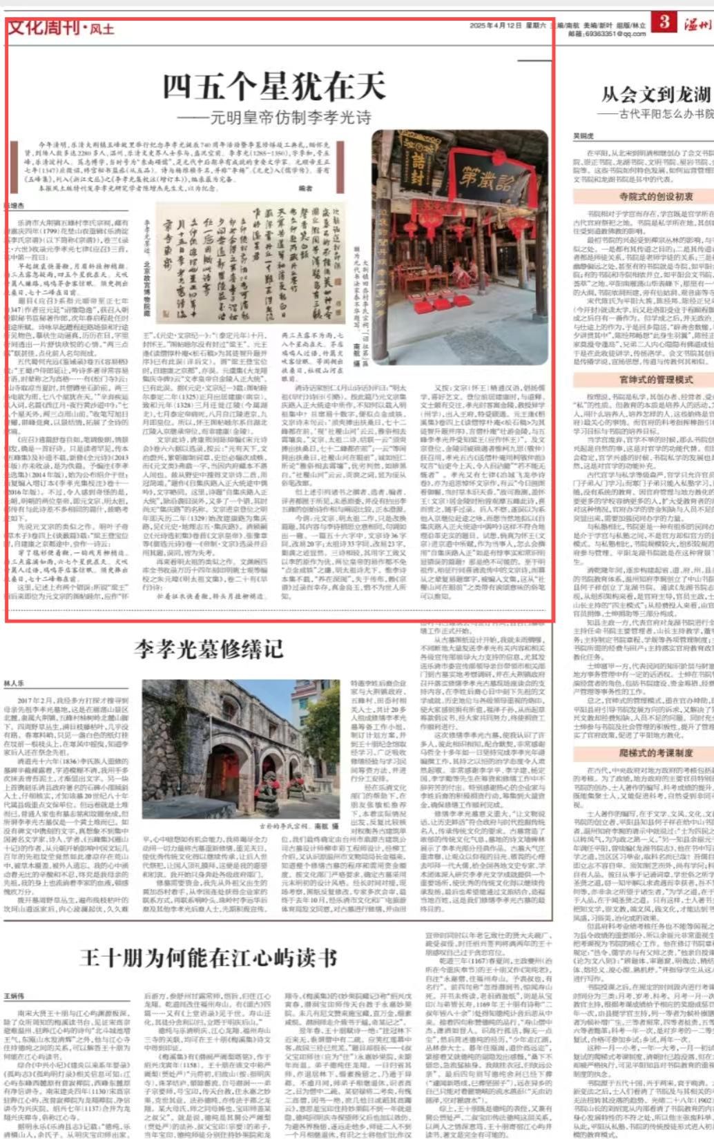 本报风土版特刊发李孝光研究学者陈增杰先生文,以为纪念。